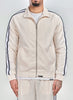 Created using a soft premium fabric, handmade and tailored for a high-quality finish. The Panelled Luxe Track Jacket features an intricate side panel detail, finished off with a custom logo detail on the side pocket and a custom zipper down the center of the garment.
